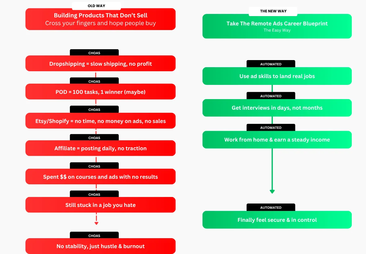 A: This is for anyone who’s used paid ads for a side hustle — Shopify, Etsy, TikTok, drop shipping, or affiliate marketing — and wants to turn those skills into a real remote job.